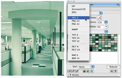 Gif, PNG 8, TIF 8, PIC 8 or BMP 8 in the Export
