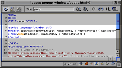 in the example). Test your popup.html movie and click the Flash